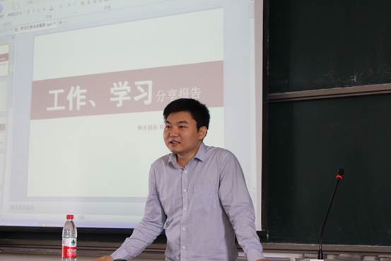 之后是王俊学长的分享。王俊学长2007年从华师毕业至今已是烽火科技-虹信公司的LTE事业部副总经理,他更着重于讲述走入工作岗位后的相处方式。首先他强调了与上司、同事等周围人沟通的重要性,还为我们列举了一些重要的工作态度、工作方法,要充分利用公司的各种资源,尊重自己所选择的职业、公司,严守职业道德等。走入工作岗位更要广泛学习,勤提问多思考才能提高自己的能力。