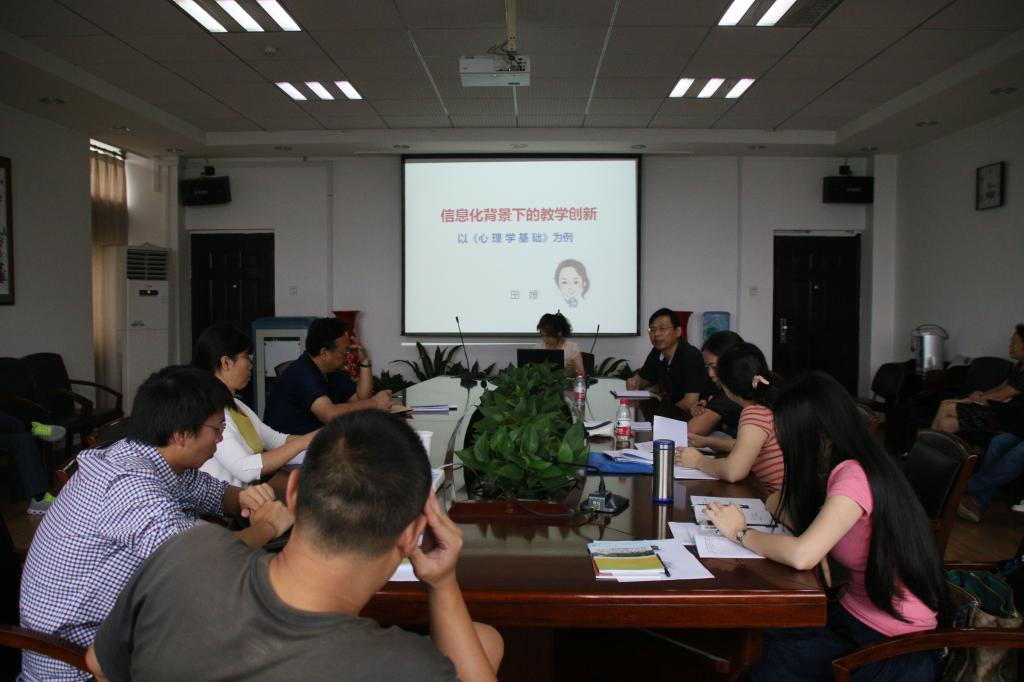 (通讯员麦曦文)9月11号下午15点,在田家炳903会议室,心理学院召开了本科教学节活动之信息化背景下的教学创新经验分享的专题座谈与研讨会。心理学院院长周宗奎,副院长马红宇以及全院教师出席本次会议。田媛、刘勤学两位老师参评了第二届本科教学创新奖,两位老师结合参评准备的过程,向全院老师分享信息化背景下的教学创新经验。