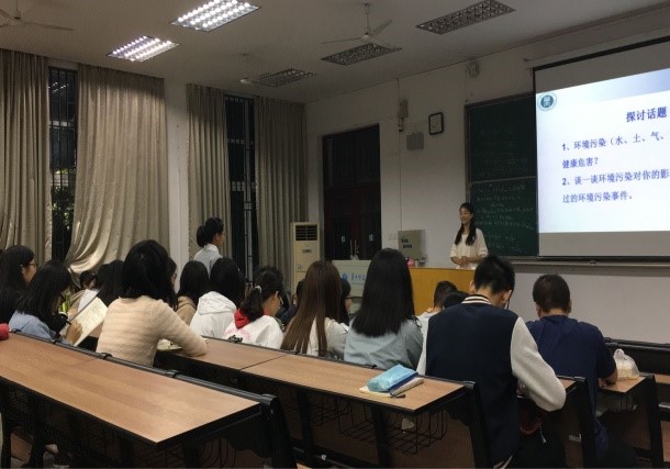 本次课程主要围绕环境污染与健康的关系讲解展开,重点介绍了不同污染物类型、来源及其对健康的影响,并设计了小组讨论环节,课堂氛围活跃。