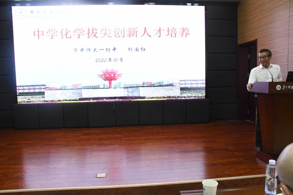 活动伊始,主持人原弘对返校校友表示热烈欢迎,并向大家介绍三位进行分享交流的校友。随后,杨国红进行报告分享。他以化学中考为切入点,从拔尖创新人才培养的重要性、成果和措施三个方面展开了他的分享与交流。他指出拔尖创新人才的培养在国家教育和发展方面有着至关重要的作用。目前,华中师范大学第一附属中学通过多种措施,打造优质师资,创新人才培养成果显著。