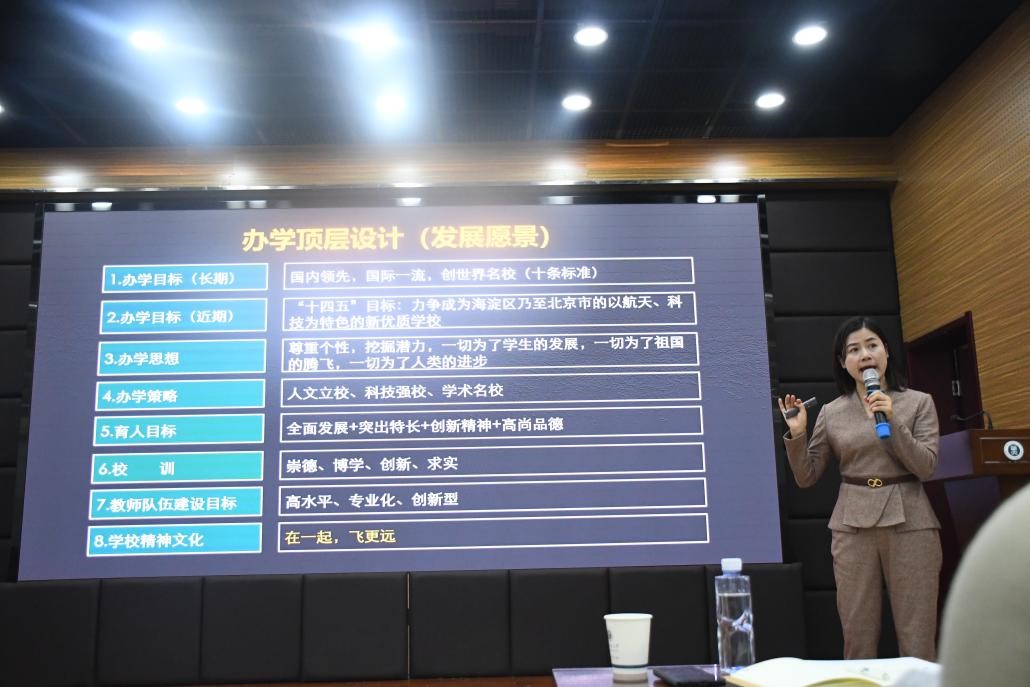 紧接着,马静聚焦核心素养,分享了中国人民大学附属中学航天城学校的“三航”课程体系建构的相关内容。中国人民大学附属中学航天城学校立足于核心素养的提升,建设了结构完整,层次清晰,内容优秀的课程体系——启航、领航、自航三航结合,实现学校的高质量发展。同时,马静还展示了小学五个年级在美术学习方面的成果,直观展现了课程体系建构对学生的影响。
