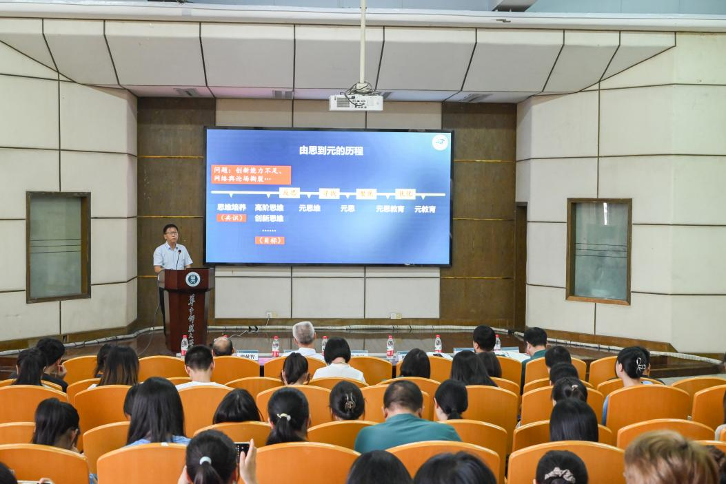 随后进行汇报的是85级校友、华科附中校长鲁周超,他将“元教育”作为报告的中心,结合华科附中的课堂教学,从“人性化”“广泛的兴趣爱好”和“基础性原理”三部分详细地阐述了如何高质量发展教育。