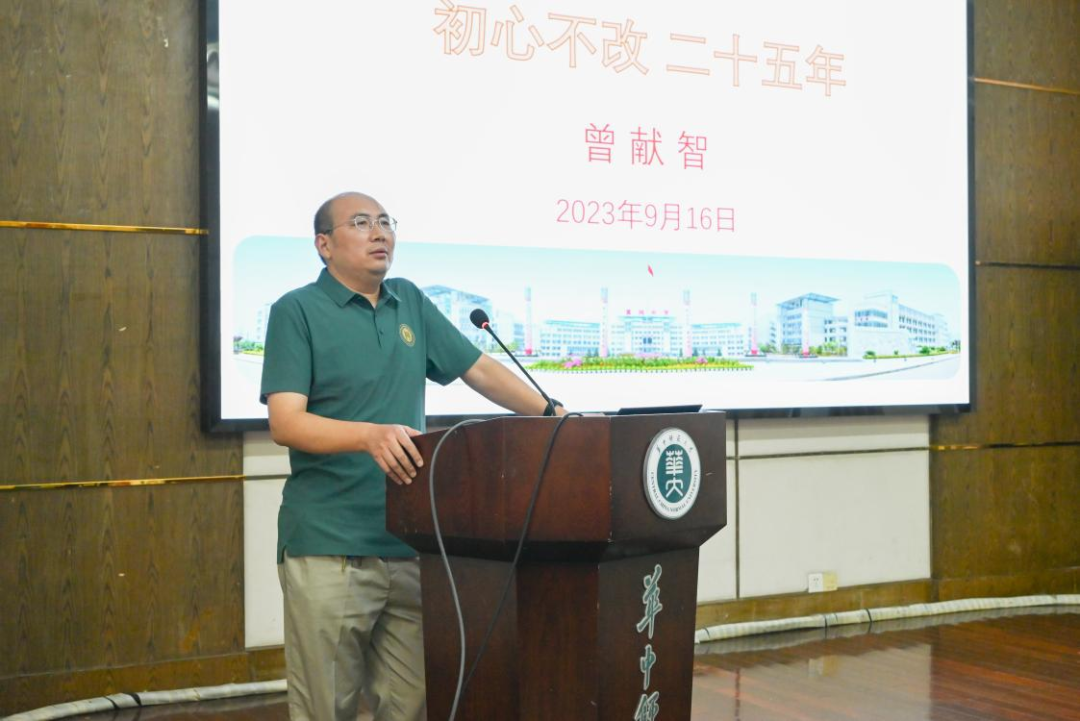 94级校友、黄冈中学特级教师曾献智用诙谐幽默的语言,将他从教25年的心路历程娓娓道来。他从爱学校、爱学生、爱教学、爱竞赛和爱教研五个方面,回顾了二十多年来不忘初心的教学生涯。
