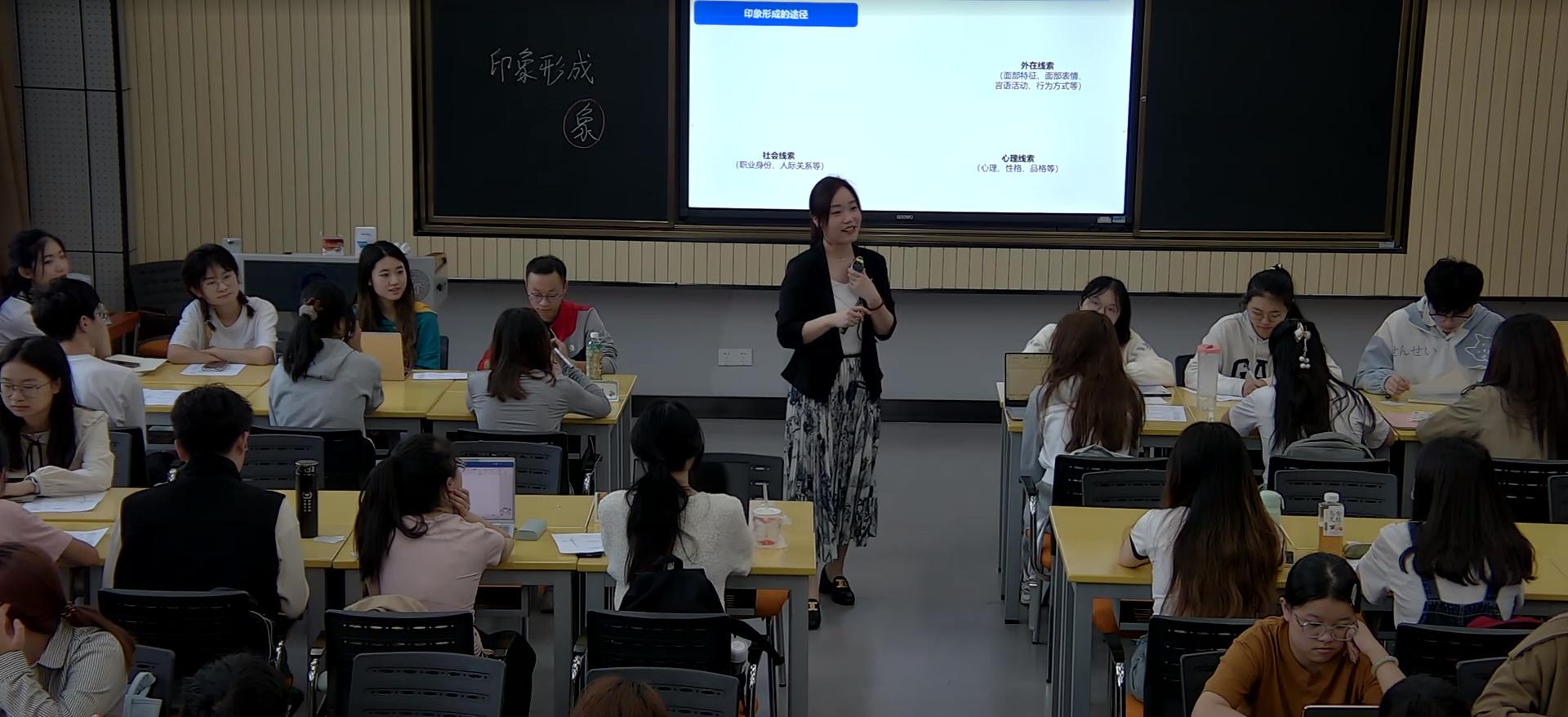 按照课程规划,本次展播内容由温芳芳老师讲授《印象形成》。在课程开始部分,通过引发学生对线索的想象以及和AI印象产生的对比激发同学们的兴趣并认识到“看人、知人”的奇妙之处。