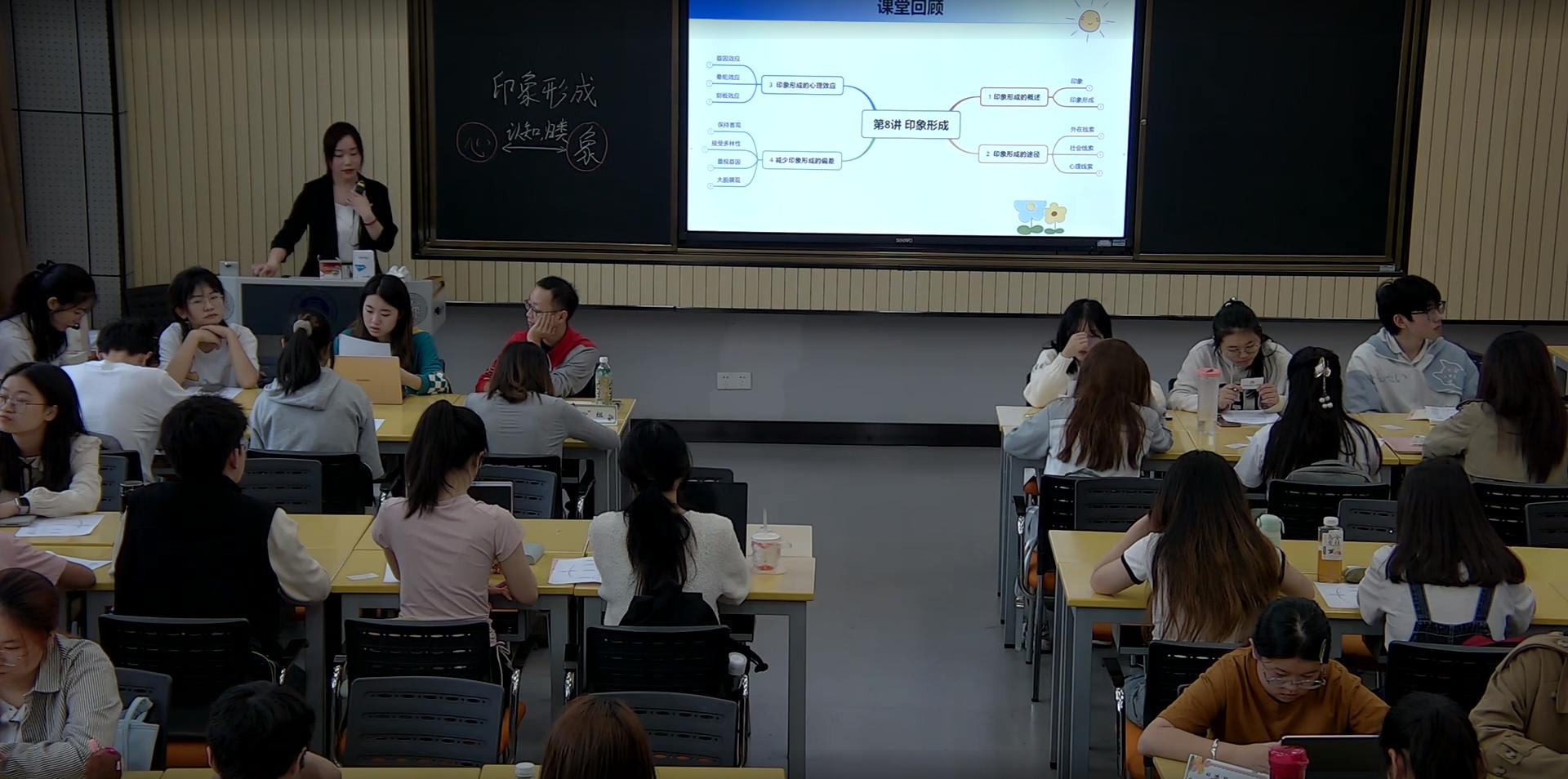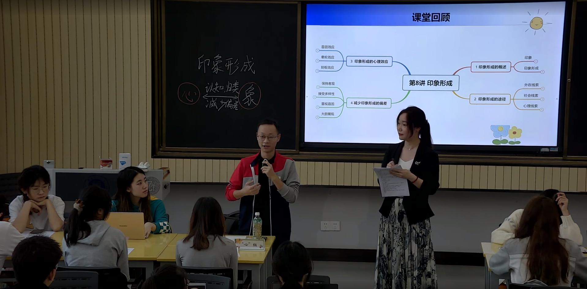 课程最后通过学生课外实践小视频请同学们思考减少印象形成偏差的方法,并总结为对人、对己两个方面的对策,为同学们提供了印象形成的具体指导并为促进其人际交往能力具有重要启示,整个课程在愉悦欢快的氛围中结束,正如课后专家点评和交流中提到该课程充满生命力的学习氛围,具有极其深远的教育意义。