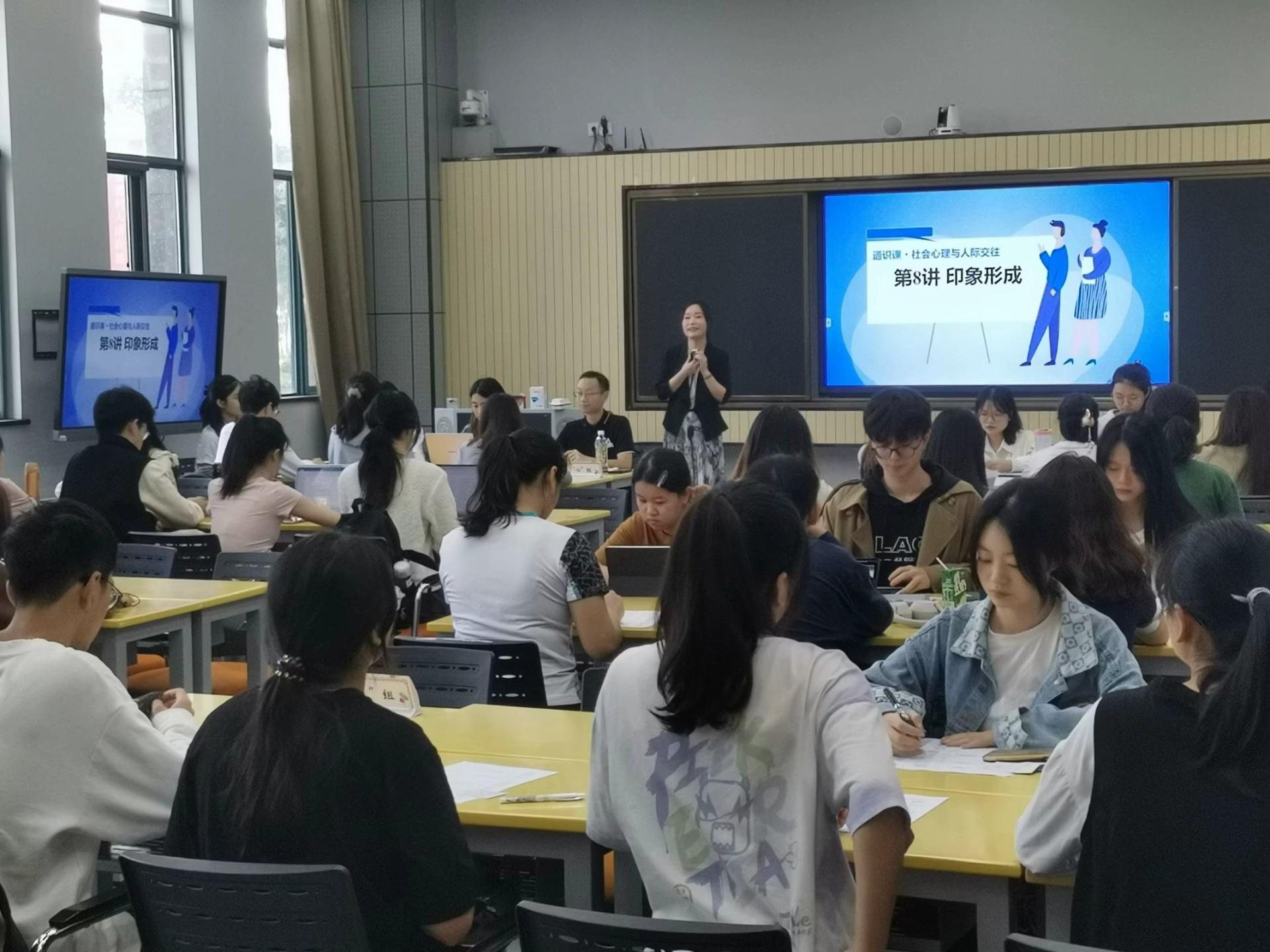 秋高气爽,丹桂飘香。第九届教学节本科优质课程展播活动第八周展播课程《社会心理与人际交往》于2023年10月31日上午10:10在南湖综合大楼106教室顺利开展。该课程由心理学院温芳芳、佐斌老师主讲,经过课程组近十年精心建设和深耕,曾获华中师范大学本科教学创新奖一等奖,并获得教育部教指委课程建设项目立项,成为广受学生欢迎和喜爱的优质通识核心课程。