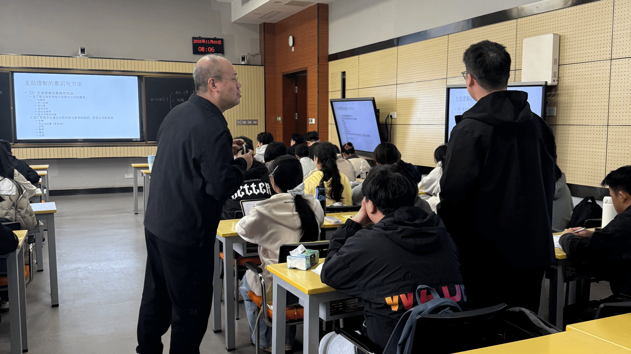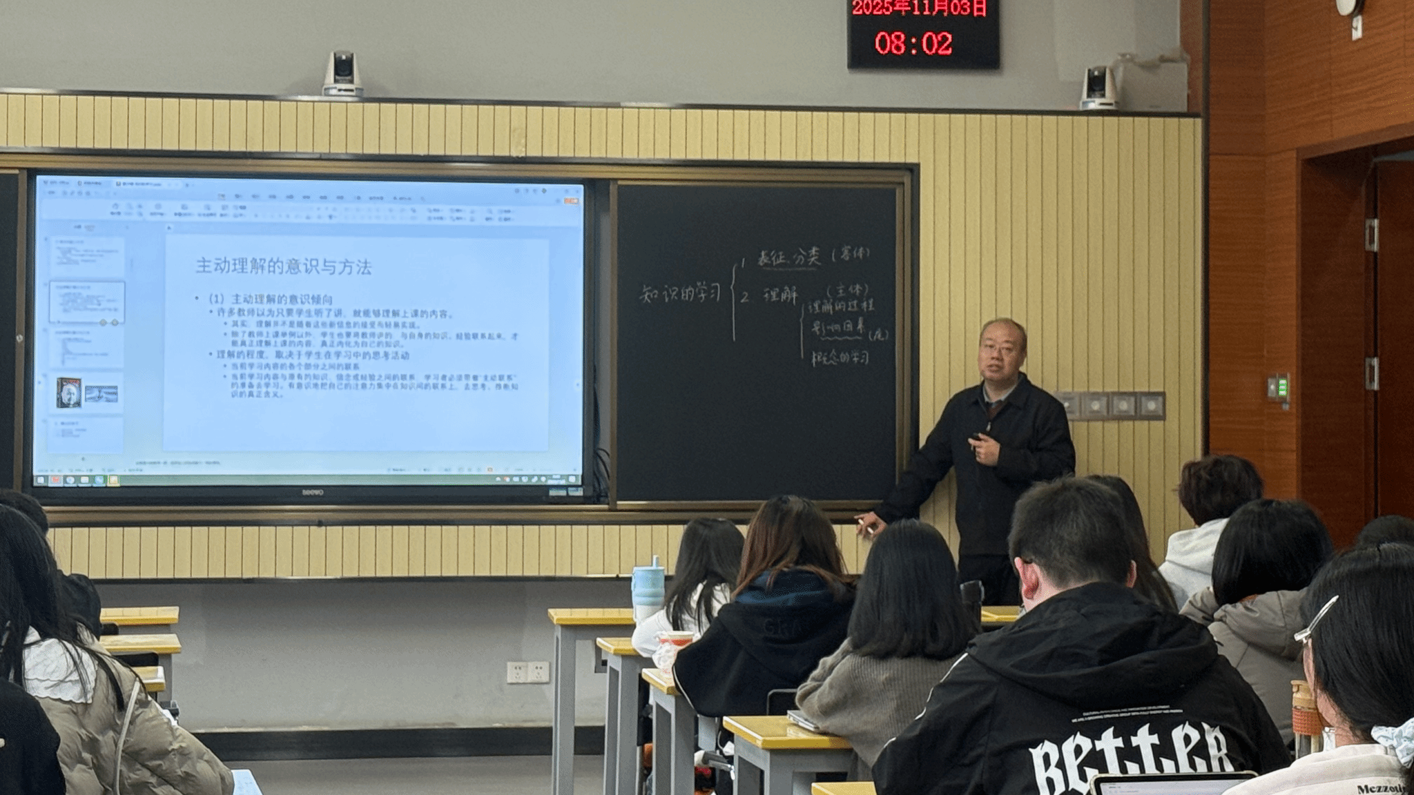 课程伊始,王泰老师引导同学们回顾“知识表征”"理解"等核心概念,有效激活学生认知储备,为新知识学习奠定基础。随后,围绕“主动理解的意识培养与方法运用”开展互动教学,充分调动学生参与度,凸显学生主体地位。课程创新运用动物行为学家康拉德·洛伦兹“印刻实验”、卡门漩涡多视角解释及高中化学知识等典型案例,将抽象理论转化为具象化学习场景。通过分析案例逻辑、对比不同解读差异,引导学生掌握知识迁移应用方法,切实实现“学懂、弄通、会用”的教学目标。