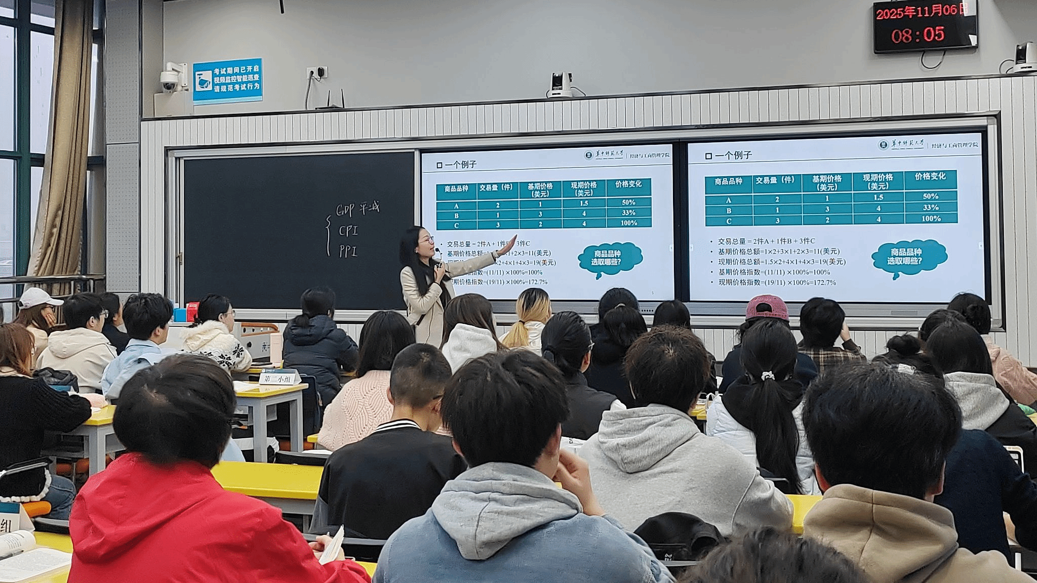 本次课程聚焦“通货膨胀”这一宏观经济核心议题。赵晓梦老师以扎实的专业功底和丰富的教学经验,从“货币加零”的思想实验入手,结合二十世纪恶性通货膨胀的历史资料,引导学生深入理解通货膨胀“普遍、持续”的核心特征。她通过“三不是、三而是”的辨析方式,清晰阐释了通货膨胀的定义,并系统讲解了CPI、PPI、GDP平减指数等关键价格指数的区别与应用。