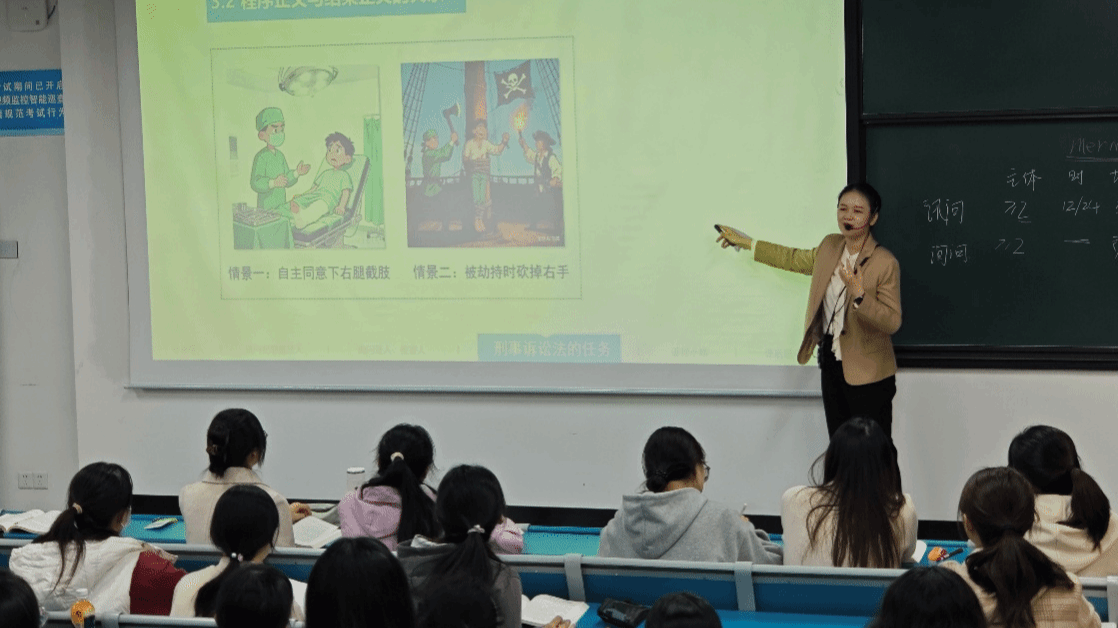 课堂中,她以呼格吉勒图冤案为案例,自然衔接讯问程序中犯罪嫌疑人的权利义务等核心知识点,并在课程最后进行思政升华,引导学生重视程序正义的独立价值,树立法治意识和社会责任感,让学生“在兴趣中学、在情境中用、在反思中悟”。