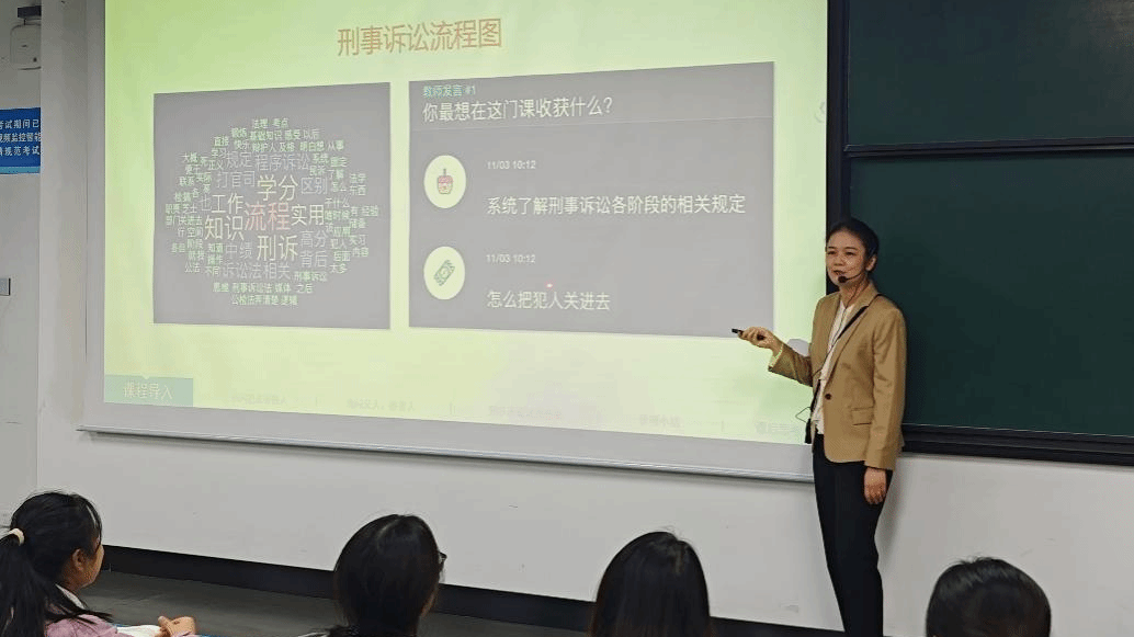 本次展播课程坚持以学生为中心,聚焦我国《刑事诉讼法》中的讯问与询问制度。课前,陶文婷收集学生学习需求并制作词云,针对高频出现的关键词,以刑事诉讼流程图为切入点,指导学生运用AI工具自主绘制流程图,直观掌握侦查程序的制度逻辑。