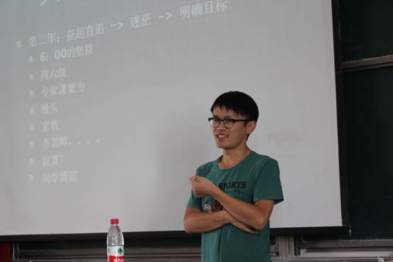 之后是王俊学长的分享。王俊学长2007年从华师毕业至今已是烽火科技-虹信公司的LTE事业部副总经理,他更着重于讲述走入工作岗位后的相处方式。首先他强调了与上司、同事等周围人沟通的重要性,还为我们列举了一些重要的工作态度、工作方法,要充分利用公司的各种资源,尊重自己所选择的职业、公司,严守职业道德等。走入工作岗位更要广泛学习,勤提问多思考才能提高自己的能力。
